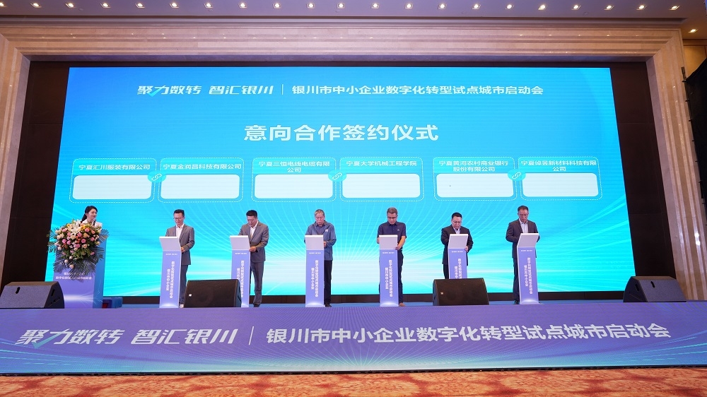 杨海云表示,此次银川市成功入选国家第三批数字化转型试点城市,标志着银川市数字化转型迈入新阶段,意味着中小企业数字化改造进入新篇章,机遇十分难得、政策十分宝贵。黄河银行作为扎根宁夏、服务地方的金融主力军,将坚定不移深入贯彻中央、自治区支持中小企业数字化转型的决策部署,愿以此次启动会为契机,携手各方积极落实银川市中小企业数字化转型工作,积极搭建数字化转型金融服务平台,用好“数字转型贷”专项金融产品,切实以农商力量助力中小企业数字化转型发展。